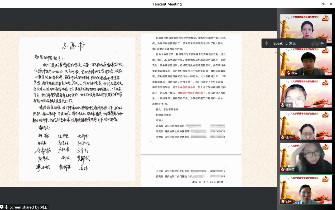 最后,杜伟书记总结发言,她表示要将学习二十大精神融入到我们日常学习生活中,青年人要在未来的日子里共同努力,始终不忘初心坚守本心,建设社会主义现代化强国。同时,号召党员同志要在疫情防控阶段起到先锋模范作用,弘扬正能量,与学校师生共同努力战胜疫情。