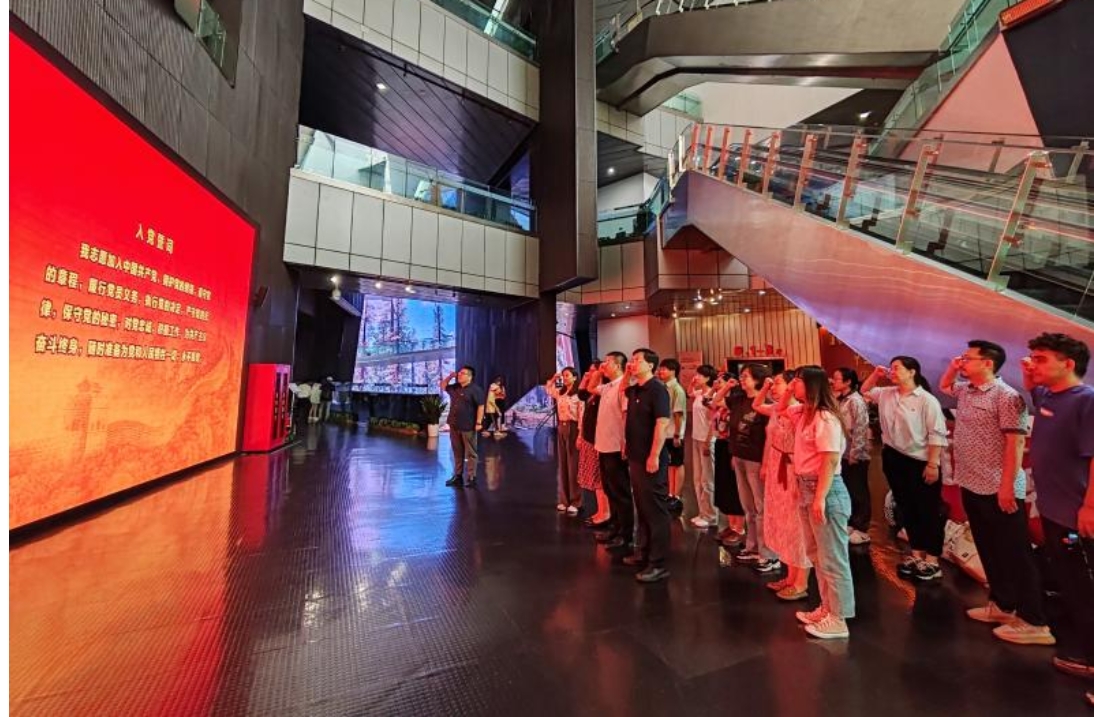 展厅参观结束后,Betway必威党委书记张小勇带领党员师生,面对鲜红的党旗,郑重地重温了入党誓词。铿锵有力的誓言回荡在展厅,不仅是一次心灵的洗礼,更是对每位党员责任与使命的再次唤醒。这一庄严仪式,让每一位参与者深切感受到了作为一名共产党员的光荣与责任,坚定了为共产主义奋斗终身的决心。