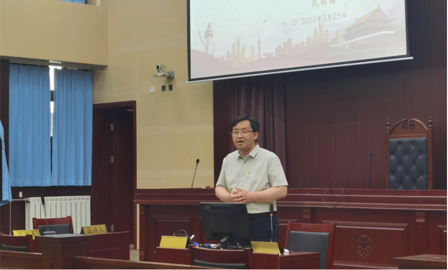 首先,孔祥国老师讲授了题为《以党的自我革命引领全面发展》的主题党课,从党的自我革命的概念、意义、关键问题和实践要求几个方面展开论述。通过对相关问题的梳理,他强调始终坚持自我革命是中国共产党区别于其他任何政党的显著标志,勇于自我革命的关键在于保持正视问题的自觉,并围绕如何提升党员的自我净化、自我完善、自我革新、自我提高能力进行阐释,号召党员同志们继续发扬彻底的革命精神,从我做起,以新时代党的自我革命引领新的伟大社会革命和全面发展。