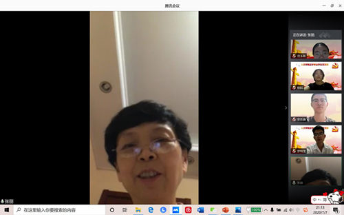 紧接着,杜伟书记、孔祥国副院长对勇于奉献的同志们给予了肯定和赞扬,并叮嘱同学们要坚守共产党员的初心使命。最后,张丽副校长做总结发言,张校长用“激动、高兴、受鼓舞、精神食粮”等一系列词汇表达了对本次组织生活会的高度赞扬以及在云端与同志们相会的激动心情,同时张校长表示看到了同志们的成长,她相信未来大家一定能够做好接班人的工作,并向大家强调作为共产党员,要强化“四个意识”、坚定“四个自信”,坚决做到“两个维护”,不忘初心、牢记使命,张校长还表达了对同学们的思念,期盼大家早日回到美丽的校园。