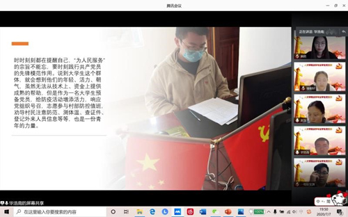 本次组织生活会前,党员同志共分为五组,梳理了支部以及身边的战疫故事,并精心制作了PPT。会议开始,支部书记刘玉老师首先介绍了本次组织生活会的重要性、目的意义。接下来,由每个小组汇报抗击疫情的真实故事,各小组成员分享疫情期间的感悟体会。支部华浩南同志、施然同志、郭佳真同志分别讲述了自己在家乡参加防疫志愿工作的经历,他们不畏艰苦,不惧风险,疫情到来时,敢于勇挑重担,向大家传递信心与正能量,值得每一位党员同志学习;楼俊好同志、刘泓辰同志分别讲述了自己父亲、母亲的抗疫故事,刘泓辰同志讲到在卫生体制内工作的母亲,勇敢奔赴前线,担起转运境外回国人员的重任,在讲述母亲的故事时,刘泓辰落泪了,她说,“如果不是看到母亲的工作日志,都不知道母亲竟然做了那么多工作,任劳任怨,我非常敬佩”,父母为孩子树立了榜样,也让他们更加坚定共产党员的理想信念。