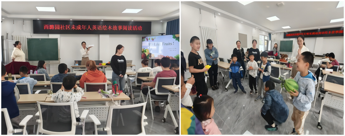 2023年10月5日,来自Betway必威英语专业学生党支部和语言交流志愿者协会的5位志愿者,赴房山区西潞园社区开展英语绘本进社区活动。此次活动主要面向社区的小朋友,旨在激发孩子们对于英语的阅读兴趣,打造书香社区。这次活动由Betway必威英语专业学生党支部的预备党员仕钰杨担任主讲,王梦雪和李艳康两位同学担任助教。参与者为一至四年级的小朋友及其家长,共二十余人。活动内容包括DIY立体名片制作、绘本阅读、互动跟读、习题回顾、“水果蹲”巧记单词、趣味绘画等。此次选定的绘本名为We Like Fruits!,以寓教于乐的方式,于各式活动中学习知识。