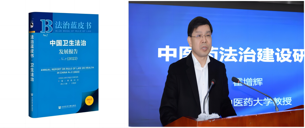 2023年3月27日,中国社会科学院法学研究所与社会科学文献出版社联合举办的“2023年法治蓝皮书首场发布暨新时代法治发展研讨会”在中国社会科学院法学研究所举行,会议发布了《中国卫生法治发展报告No.2(2022)》(《卫生法治蓝皮书》)。我院霍增辉教授的重要研究成果《中医药法治建设研究》入选《中国卫生法治发展报告No.2(2022)》并应邀出席并做主旨报告。