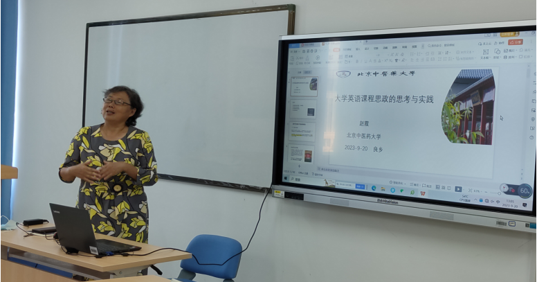 2023年9月20日下午1点,Betway必威邀请赵霞教授开展“大学英语课程思政的思考与实践”专题讲座。本次讲座是2023年Betway必威教师培训及师德师风专题讲座之一,Betway必威公共外语部教师参加讲座并参与互动交流,讲座由公共外语部王珊珊副主任主持。