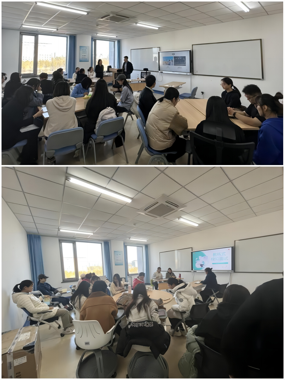 最后,活动进入了团队小组合作任务阶段,各组共同总结这次模拟面试的收获、经验和技巧。这个环节旨在促进参与者更深入的思考问题和解决问题的能力,同时增强了活动的互动性和参与度。在小组合作环节中,刘玉老师还向大家介绍了“玉见成长工作室”。该工作室依托大学丁香咨询平台,特聘校内外专业教练,面向全校同学开展职业发展、就业指导、生涯规划、个人成长、情绪压力等方面的服务,助力学生个人成长。