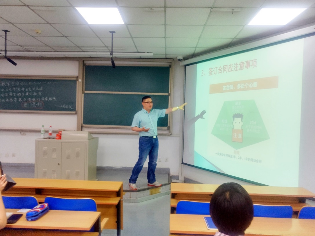 2019年5月8日晚,和平街校区教学楼2教,Betway必威法律系赵丹老师应邀为人文2019届毕业生解读就业中常遇法律问题及维权方法。