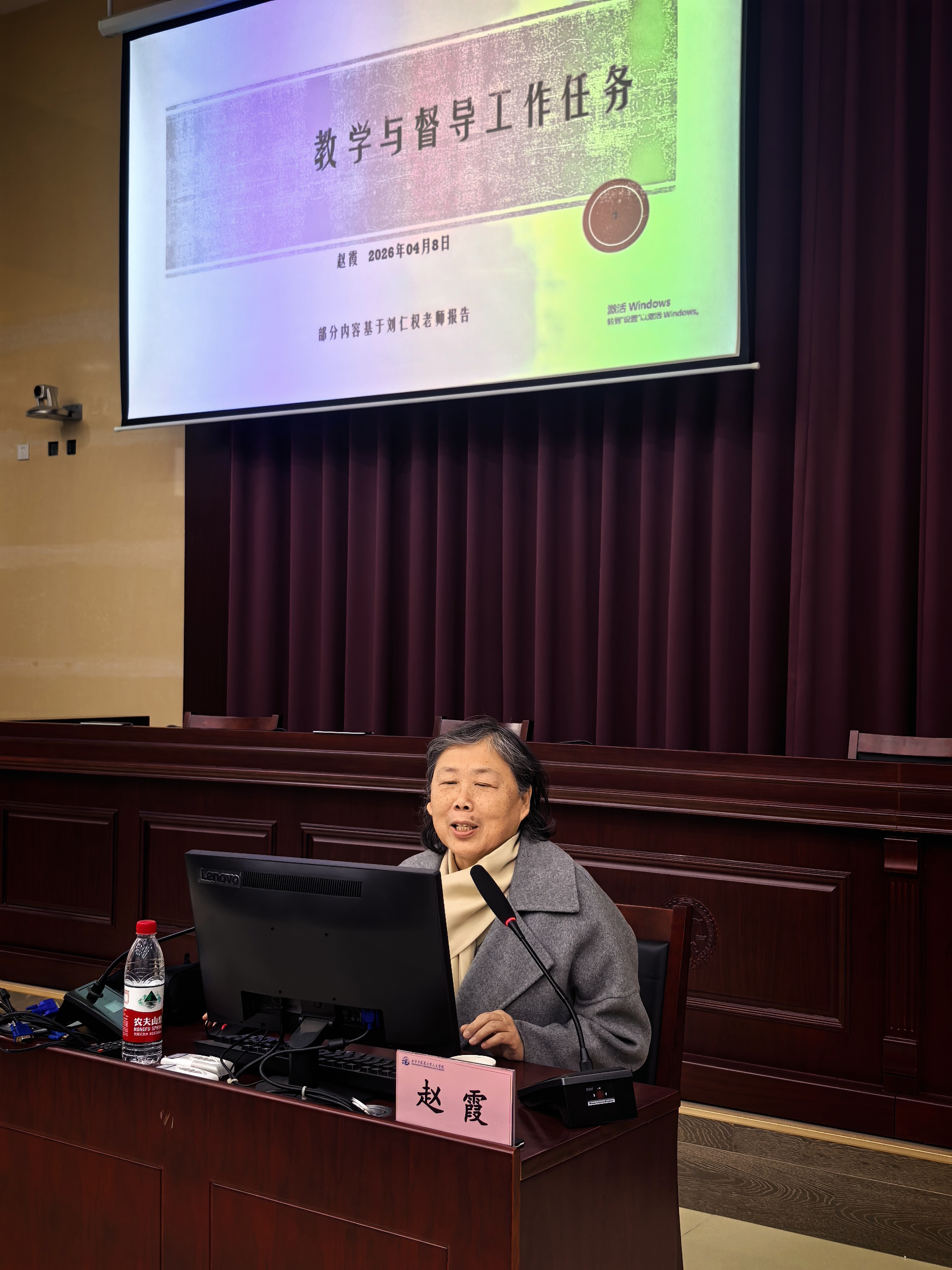 随后,赵霞教授结合年度督导工作安排,对本学期教学督导重点内容进行了全面解读与专项强调,围绕课堂教学规范、教学资料完备性、教学质量监控等方面,明确了督导标准与评价要点,并从课堂教学整体情况评价、授课教师教学情况评价、学生学习情况评价等角度介绍了督导专家听课评价的主要内容。