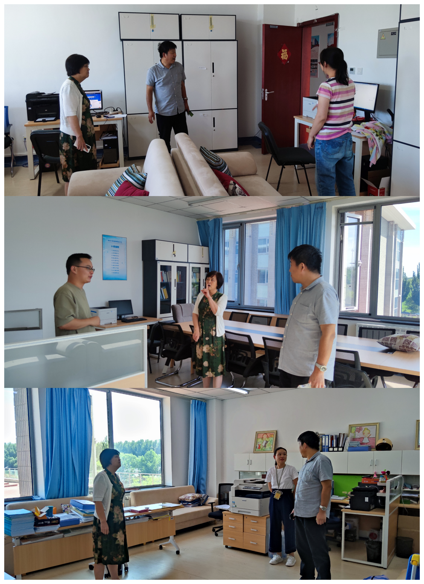 安全检查过程中,对各办公室门窗的关闭,用电和消防安全、电器线路连接使用,以及存在的安全隐患进行了检查和整改。重点对语音室、模拟法庭等公共场所可能存在安全隐患进行认真的排查并张贴封条,以保证暑假期间的安全稳定。