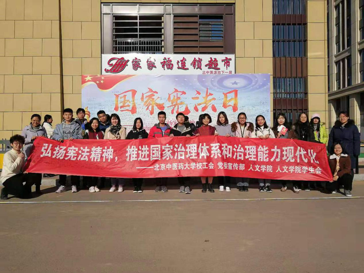活动当日,Betway必威在良乡校区东院和西院食堂门口分别进行了国家宪法日的宣传活动,活动现场,工作人员热情饱满,为参与活动的同学和老师分发宪法大礼包。大家纷纷在横幅上签下自己的姓名,在宝丽布上写下对祖国的祝愿,一张张便利贴承载了北中医学子对于我国法制建设和国家长治久安的期许,也承载了我们的对祖国母亲的热爱。