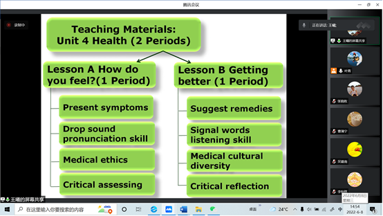 经前期选拨,王曦、陈宁和高琳琳老师将分别参加本次全国高校外语教学大赛(大学外语组)北京赛区大学英语视听说课组、大学英语综合课组和大学日语组的比赛。王曦老师围绕“Health”这一教学主题,基于“产出导向法”和“交际语言教学”理念,设计了知识、技能、文化、批判性思维和课程思政的教学主线,通过展示奥运会中的中西疗法引导学生认识到用英语介绍不同医疗方法的重要性,通过授课为学生输入、内化相应的知识技能,在产出环节组织学生用所学语言知识介绍医疗方法并给予评价反馈。教学过程中注重对学生进行深层次文化及思政教育,进一步锻炼了学生对所学知识技能的应用能力,在加强对跨文化医疗多样性认识的同时提升了沟通技巧。
