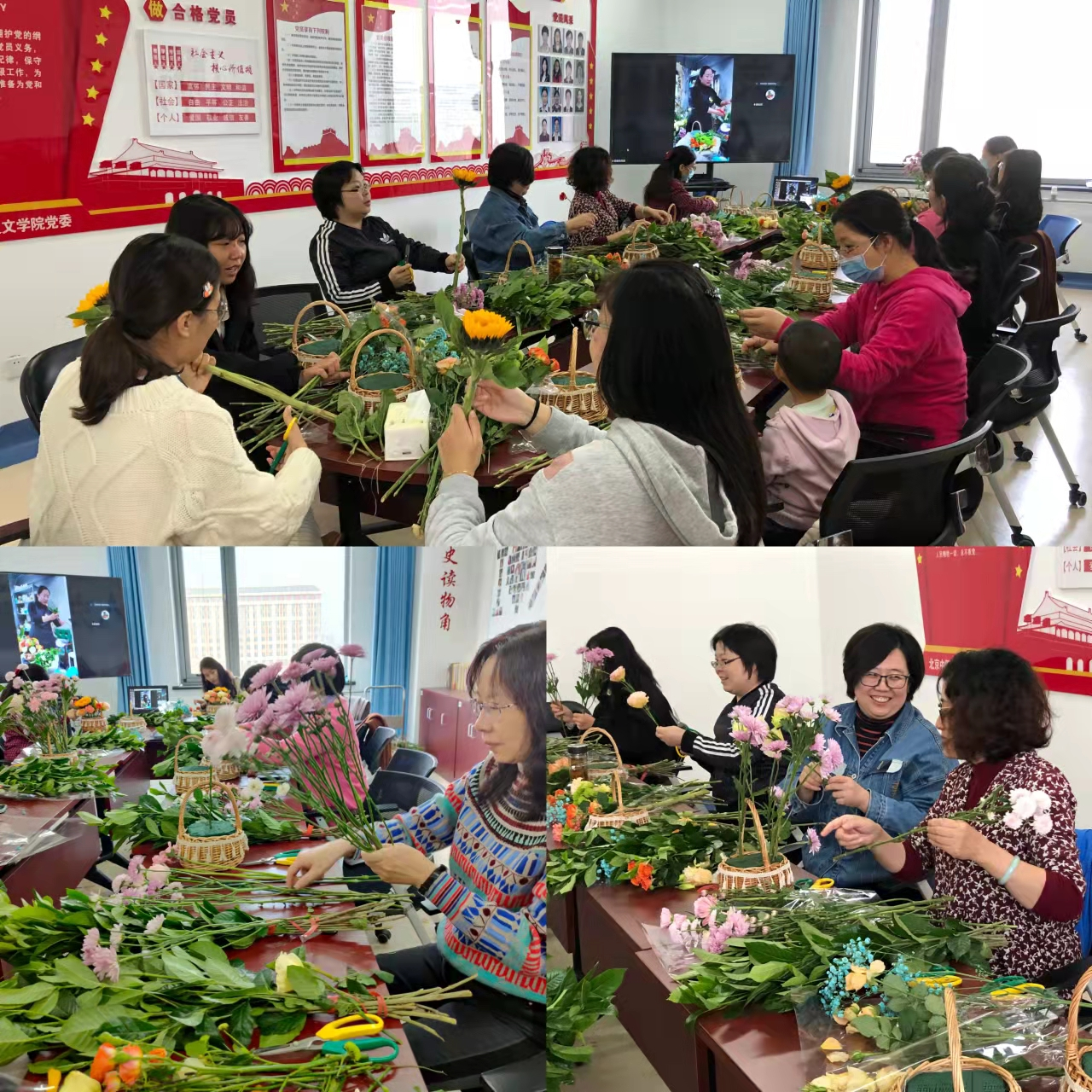 2021年11月3日中午,Betway必威分工会“与花相伴,铭记党恩”教师插花活动在Betway必威401工会之家顺利开展。此次活动由花店专业人员进行线上指导,教师们领取花材后通过腾讯会议互动学习插花。