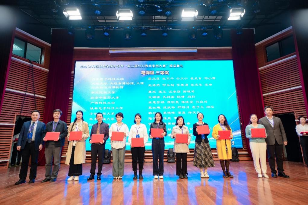 2025年11月1日,由全国翻译专业学位研究生教育指导委员会指导、上海市科技翻译学会主办的“2025MTI案例教学研讨会暨第二届全国MTI教学案例大赛”颁奖典礼在上海应用技术大学(奉贤校区)顺利举行。我院王珊珊副教授、孔祥国教授、陈锋教授、阎莉副教授共同完成的教学案例《中医药典籍翻译人才培养与教学实践》荣获大赛笔译组三等奖。王珊珊副教授作为课程负责人代表团队赴沪领奖。这是我院首次参与该项全国性赛事。