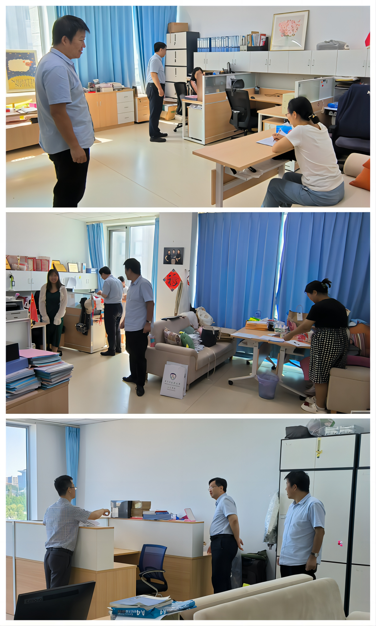 为确保新学期Betway必威学生和教职员工的安全,有效预防和杜绝安全事故的发生,2023年8月29日学院陈子杰副院长、孔祥国副院长带队,综合办相关人员随行,对学院安全情况开展例行检查。