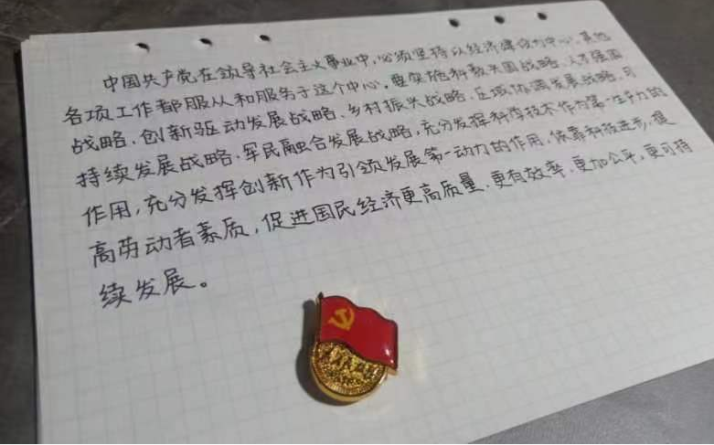 习近平总书记强调,学习党章是全体党员的基本功。党章是立党、治党、管党的总章程,集中体现了党的性质和宗旨、党的理论路线方针政策、党的重要主张,规定了党的重要制度和体制机制,是全党必须共同遵守的行为规范和根本准则。本次支部活动首先是“一笔一划”抄党章,即各位同志原原本本、一笔一划抄党章。平日里敲惯键盘、疏于动笔的党员纷纷拿起笔,工工整整地抄写党章。在抄写党章的过程中,各位党员充分发挥主观能动,用不同的方式认真书写党章,体会党章内容。