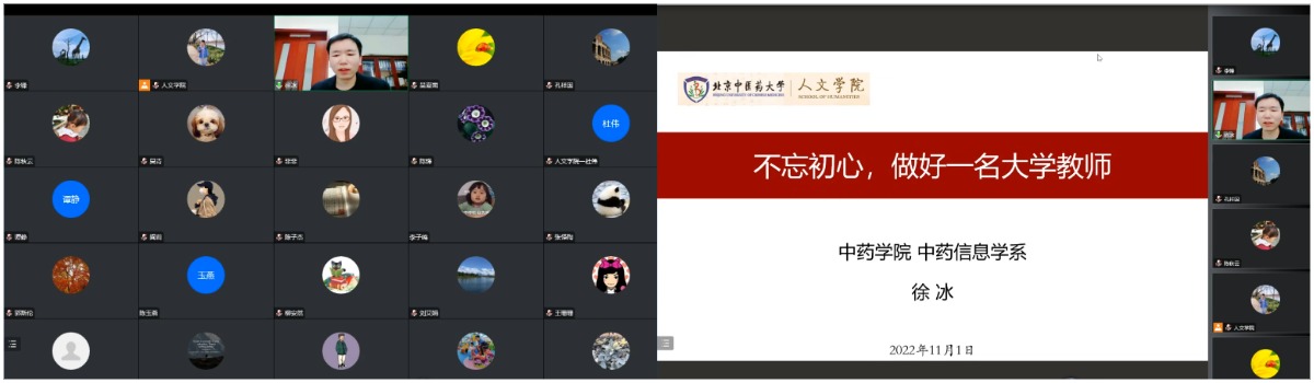 此次报告主题为“不忘初心,做好一名大学教师”,主讲人徐冰副教授为我校中药学院中药信息学系副主任,硕士生导师,校优秀青年教师、优秀党务工作者。徐老师从个人教学科研的基本实践经验出发,向全院教师分享了教育教学、科学研究和社会服务等不同部分工作的经验及自身体会。作为中药学博士、硕士生导师、中药信息学系副主任,徐老师担任了多门课程的主讲老师,并参与多部教材、论文的编撰与撰写,主持教育部产学合作协同育人项目、协助组建和维护Betway必威虚拟仿真实验教学中心平台,并任职于十余个学术团体、参与社会服务项目,教育教学经验和科学研究经验丰富,报告内容详实。徐老师以中药颗粒与日本汉方颗粒对比的问题举例,凸显出作为青年中医药工作者强烈的问题意识、创新科研精神以及传承与发扬中华中药文化的积极态度。报告最后,徐老师再次强调了不忘初心、牢记使命、争做一名大学好教师的重要意义。