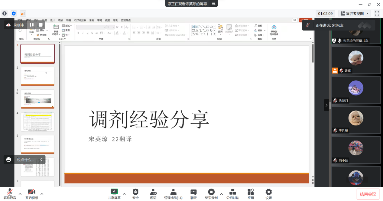 最后,宋英琼分享了翻译硕士调剂的经验。调剂前需要关注调剂资格,调剂的步骤,调剂院校信息、分数线,特别注意各个学校调剂时间不同,需要及时关注,把握填报系统时间。