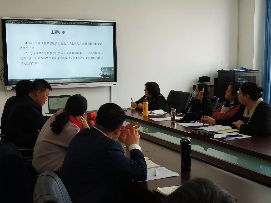 接下来,孔祥国副院长结合学校相关工作,就新一轮课程思政示范课程申报等近期工作进行了安排,并通过组织参会人员集体观看我院课程思政示范课程授课录像的方式就课程思政建设中的细节问题进行了深入讨论,集思广益,力争进一步提高我院课程思政建设水平。
