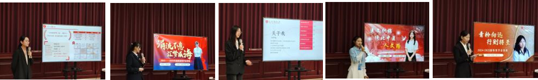 2024级共有五位同学参与本次答辩。24英语(医学)的施懿宸同学成绩优异,积极参与课题项目,在心理委员工作、岐黄志愿者协会工作中认真负责;24英语(医学)班的刘宇烟同学成绩优异,在多项学生工作中发挥重要作用,积极传播中医药知识,坚持我为人人、人人为我;24法学(医药卫生)班的雷壹帆同学坚持军旅铸魂、学业筑基、实践砺能,追求全面发展;24英语(国传)的尹杭同学品学兼优,不仅是优秀学生干部,更注重全面发展,积极参与各项活动与比赛并取得优异成绩;24英语(国传)班的李梦祺同学坚持智育、体育全面发展,积极开展学生工作、参加各项活动。