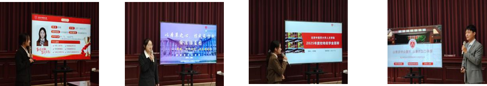 2022级共有四位同学参与本次答辩。22法学(医药卫生)班的曾敏同学勤奋学习,班级成绩名列前茅,在科研竞赛中突破自我,坚持全面发展,积极参与学校活动,现已获得保研资格;22法学(医药卫生)班的程微同学积极投身科研探索,多次获得英语学科的重大奖项;同样来自22法学(医药卫生)班的魏梓欣同学在社会实践与科研经验上不断丰富自我,学科竞赛成绩优异,笃志前行,成功获得保研资格。22级英语(国传)班邓博珊同学在学校党委、书画协会等多个组织任职,科研成果突出,成绩优异;22级英语(国传)班的徐晓慧同学勤奋学习,班级成绩名列前茅,坚持文体并举,全面发展,积极参与学校活动。