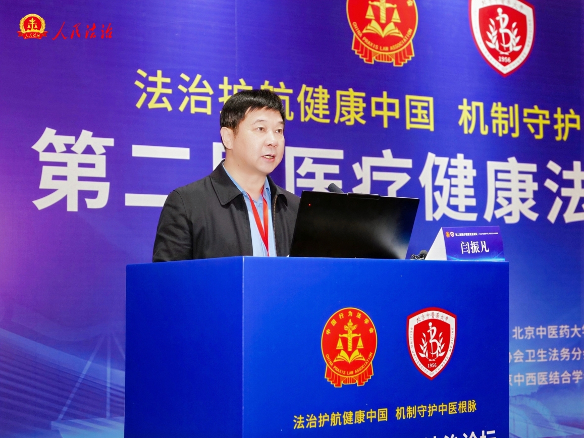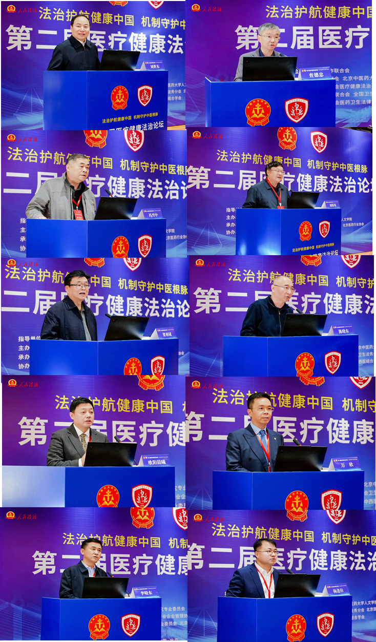 在论坛主题报告环节。多位领导、专家、学者围绕中医药法治建设、医患关系治理、医疗健康产业合规等热点问题分享真知灼见。