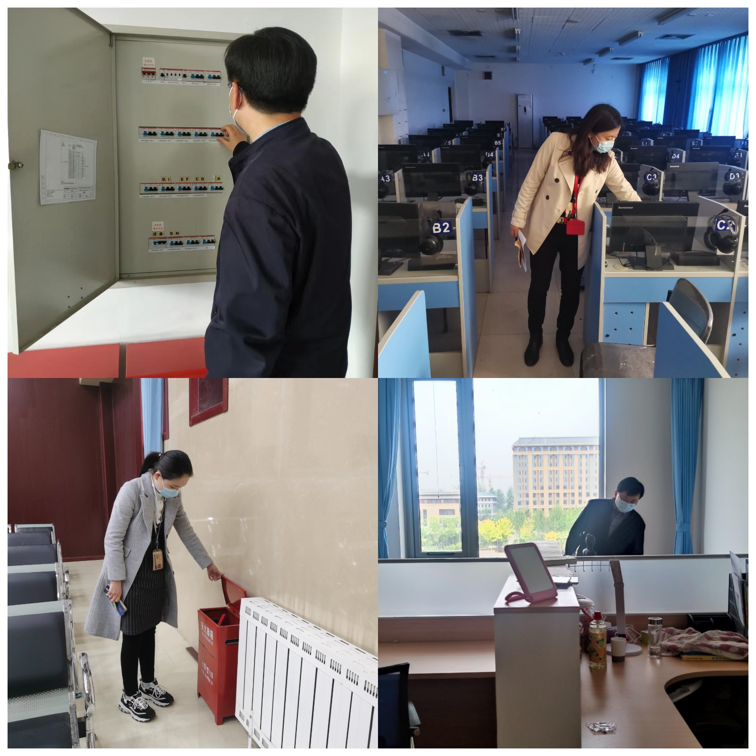 其次,孔祥国副院长、谭静副书记对我院良乡校区和和平街校区相关办公室、教室等进行了安全检查,对用电和消防安全、电器线路连接使用等情况以及存在的安全隐患进行了全面排查和整改,保证“五一”期间的安全稳定。