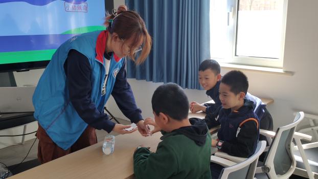 首先,主讲人刘宇婷,与助教曾幸、董飓威进行了自我介绍,拉进了与小朋友们的关系。接着,主讲人刘宇婷从绘本小猪佩奇的故事出发,由浅入深的展开讲述,向小朋友们介绍了垃圾分类的知识和相关英语表达。之后,助教董飓威借助手工制作的垃圾分类箱和模拟小卡片带领大家检验了学习成果,小朋友们共同参与,沉浸其中