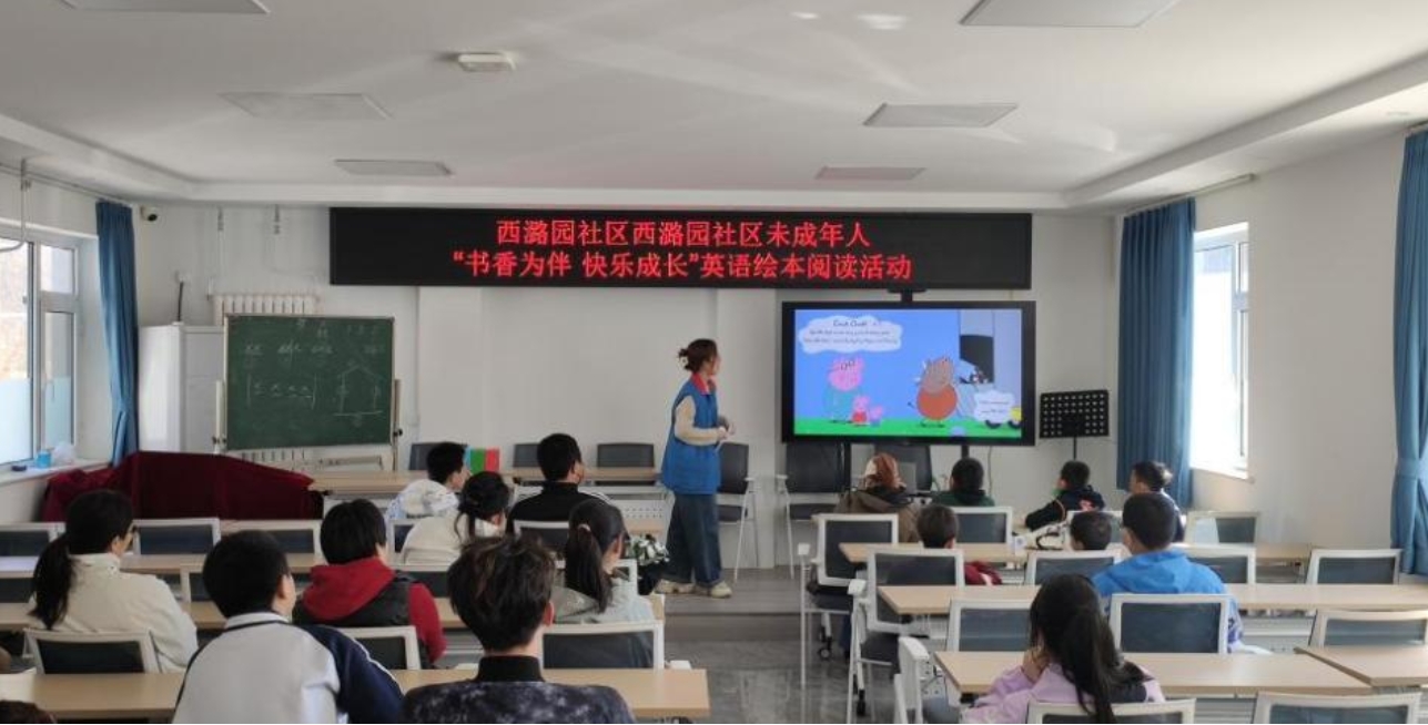 活动当天上午8时许,志愿者提前来到西潞园社区党群服务中心布置场地,连接设备,并进行签到。上午九点,活动正式开始。活动的主要内容为学习英语绘本《小猪佩奇:回收的乐趣》,由主讲人学生党员刘宇婷,助教董飓威、入党积极分子曾幸带领大家共同学习垃圾分类相关的英语表达,提高口语和听力能力。
