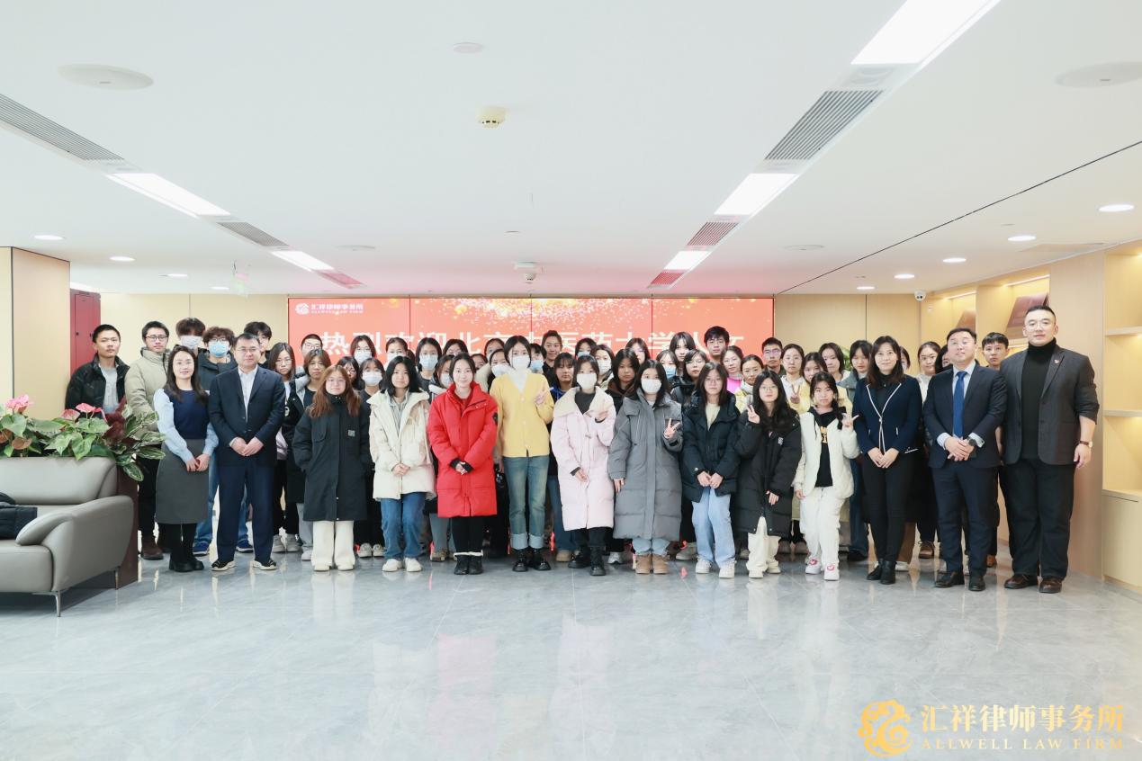 在北京汇祥律师事务所执行主任栗彬、青年律师工作委员会主任乔木等律师的带领下,Betway必威师生依次参观了汇祥律所的荣誉墙、律所标志、党建活动中心、客服中心、工作区等,了解了律所的发展沿革、工作流程以及业务成果,感受到积极向上的企业文化。汇祥律所的援藏工作、公益服务以及与国内外多所高校的共建等给同学们留下了深刻印象,也使同学们对律师事务所的工作环境、组织架构以及律师的职业形象有了更加直观的认识。