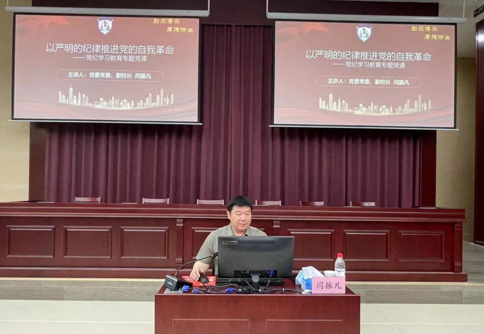 6月5日下午,党委常委、副校长闫振凡为Betway必威师生讲授党纪学习教育专题党课,Betway必威院班子、全体教师、学生党员参加学习。会议由Betway必威党委书记张小勇主持。