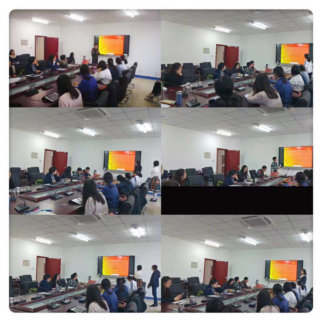 接下来,各小组汇报展示了“平语近人”—习近平总书记用典英文翻译赏析的成果。通过前期精心准备,各组同学分别对“治国有常,而利民为本”、“见善则迁,有过则改”、“水则载舟,水则覆舟”、“天下之本在国,国之本在家”、“独学而无友,则孤陋寡闻”等句子,从出处、译者的基本情况、句式含义分析及现代解释等方面,讲述了自己的学习内容及学习体会。同学们认真分享、积极思考的态度得到了各位老师的认可,老师们也针对英文翻译要点、词汇选择等问题表达了自己的看法。