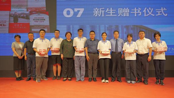 在新生赠书仪式上,学院领导老师向2025级新生代表赠送了学院精心挑选一套书籍。所赠书目盖思想引领、专业发展、人生规划、筑牢中华民族共同体意识等主题,旨在助力新生开启更加充实的大学之旅。这份饱含期许的“精神礼物”,不仅为新生提供了丰富的阅读资源,更传递了学院对同学们成长成才的深切关怀,希望同学们在书海中汲取智慧,在阅读中涵养品格。