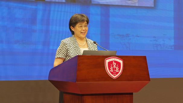 陈锋院长代表Betway必威致辞。她首先对全体2025级新生的到来表示热烈欢迎,随后结合Betway必威的学科特色与发展理念,向新生们系统介绍了学院在医学人文教育、英语专业培养、中医药国际传播、医药卫生法治建设等领域的优势与成果。同时,她对新生提出殷切期望,鼓励同学们以“勤求博采,厚德济生”的校训为指引,在未来的学习生活中兼顾专业素养与人文情怀,既要深耕知识领域,又要涵养家国情怀,努力成长为推动中医药事业与人文社会科学融合发展的复合型人才。