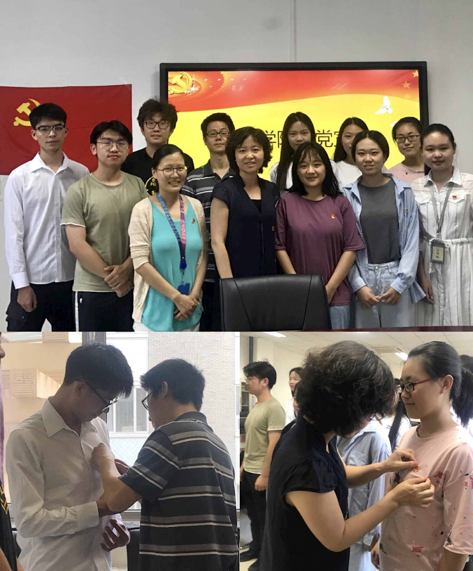 两校区宣誓仪式分别由学办辅导员储晓娟和法学专业学生党支部书记刘玉主持,Betway必威党委书记杜伟、院长陈锋、党委副书记李蔓荻、副院长孔祥国、研究生党支部书记陈秋云、英语专业学生党支部书记项婷参加仪式。仪式开始,杜伟书记、李蔓荻副书记带领23名新发展党员在党旗下庄严宣誓;紧接着,四位院领导为新发展党员逐一佩戴党徽;随后,新党员同志纷纷表达此刻激动的心情,表示要时刻以党员标准严格要求自己。学院还组织新发展党员现场收看了大型党员教育系列宣传片《难忘初心》第一集《播火者——李大钊》,通过带领学生党员了解李大钊同志的事迹,使大家进一步坚定了初心和使命。