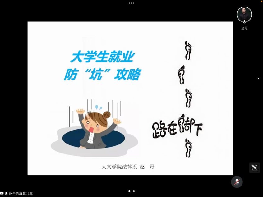 为了帮助毕业年级的毕业生们在就业过程中维护好自身权益,Betway必威于2022年4月27日晚7时在腾讯会议上召开了“法律系教师教你就业‘防坑’”讲座,会议邀请到了Betway必威法律系副主任赵丹老师为2022届毕业生答疑解惑,帮助同学们顺利就业,会议由2021级法律硕士生夏小涵主持。