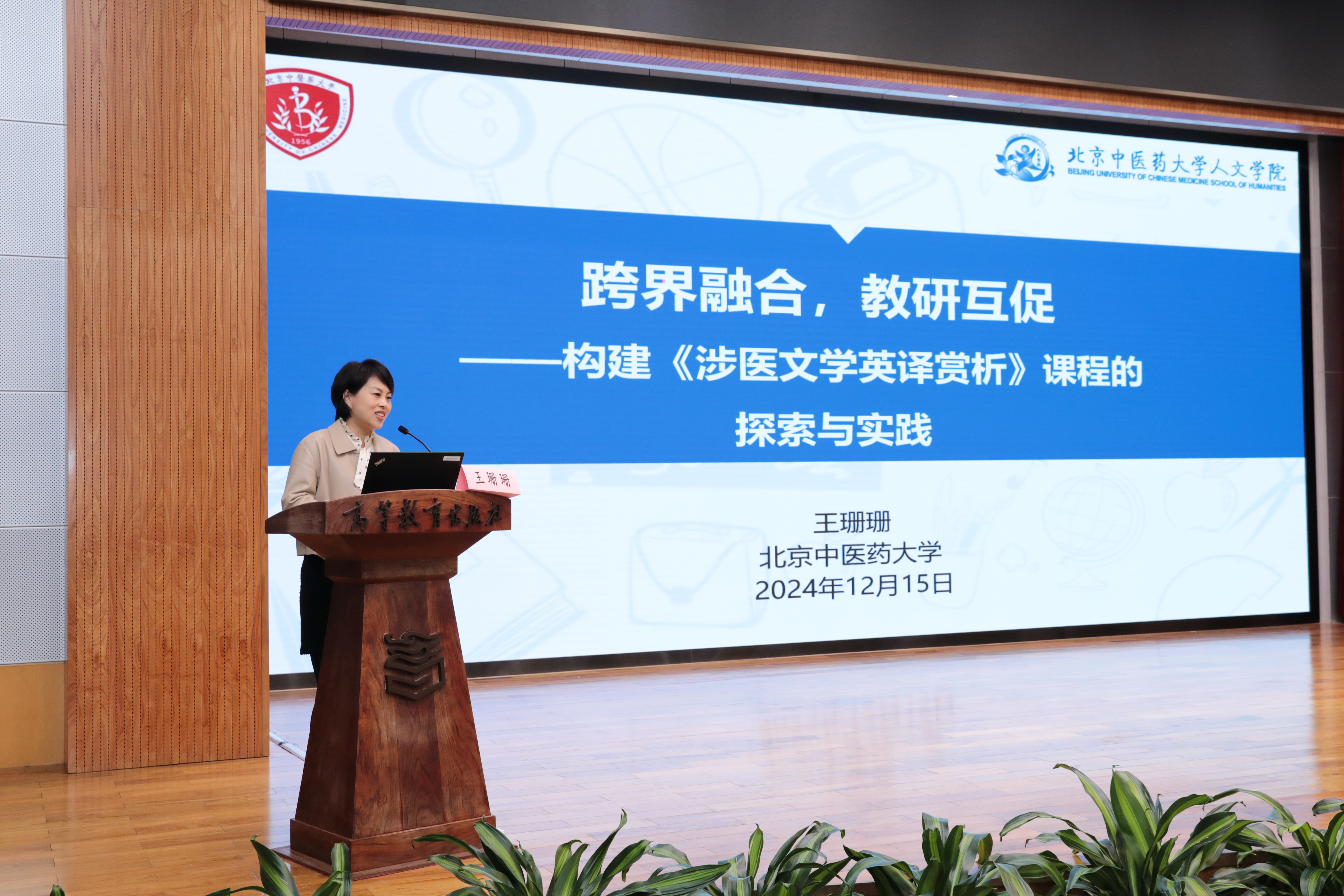 2024年12月15日,在北京市高教学会大学英语研究分会第21届理事全会上,Betway必威王珊珊副教授主讲的《涉医文学英译赏析》课程荣获“大英好课奖”,同时王珊珊副教授作为获奖代表,应邀发表了题为《跨界融合,教研互促——构建<涉医文学英译赏析>课程的探索与实践》的主旨报告,分享了自2017年以来构建该课程的心路历程。