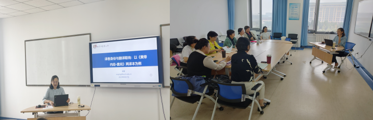 吴青教授回顾了33年的教师生涯,并以此为切入点,强调了新时代背景下,外语教师应树立职业发展新理念,努力协调教学、科研与翻译实践三者的关系。随后,吴教授分享了自己丰富的中医翻译经验以及丰硕的研究成果,并指出:中医英译研究过程中,要格外关注译者的翻译能力与文化素养两个要素对中医译介与传播效果的影响,明确中医译本的目标受众与读者需求。最后,吴教授采用文本分析的研究方法,从书名、篇名、名词术语、句子以及段落五个维度,辩证地分析了倪懋兴与李照国两位译者的《黄帝内经·素问》译文与翻译取向的差异,客观地评价了两部译作的时代贡献与深远影响。吴教授以翔实的研究资料为支撑,向在座的各位教师娓娓道来,重申我校外语教师要时刻谨记自己作为学者、译者和教育者在中医文化译介与传播工作中的使命担当。