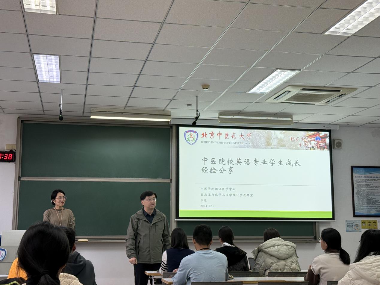 李老师以自己的求学背景为内容,以时间为线索,为英语专业新生全面、细致地展示了自己作为一名英语专业员工向中医药英语复合型人才迈进的成长之路。她详述了自己本科(英语专业)、硕士研究生(医学专业)、博士研究生(医学专业)、联合培养等各个阶段的目标定位、学习经验、方向选择,强调新生应该在充分认识自己、探索个人兴趣的同时不忘初心,让热爱和志向成为成长的自驱力。要珍惜和深度挖掘自己的兴趣,如李老师本人在接触到循证医学后便开始了沉浸式学习,深耕循证医学领域,从此找到自己学术生涯的方向。