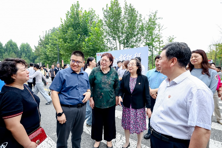 迎新过程中,学校领导亲临现场向2025级新生表示热烈欢迎,并对志愿者们认真负责的态度和辛勤付出给予了充分肯定。领导们与师生志愿者亲切交流,并合影留念。