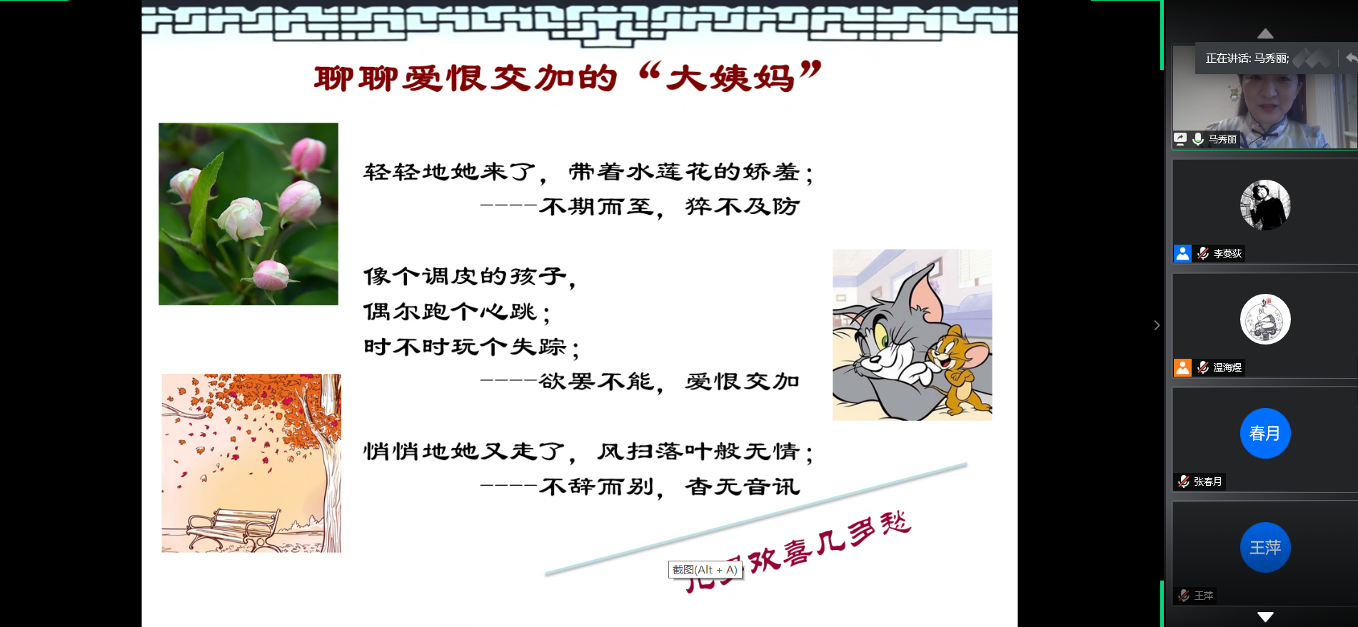 2020年5月23日晚19:00,Betway必威分工会举办了一场以“如何守护您的秘密花园--聊聊女性妇科保健那些事儿”为主题的线上讲座活动,本次讲座邀请了Betway必威东直门医院妇科马秀丽主任,由Betway必威分工会主席李蔓荻副书记主持,学院教师积极参与,反响热烈。